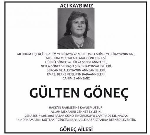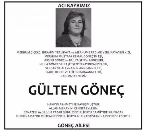 Sözcü Gazetesi Vefat İlanı