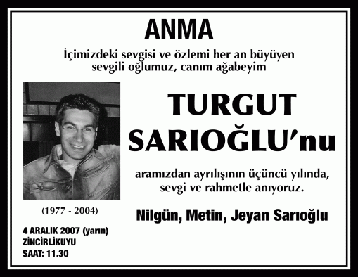 Sevdiklerimiz vefat ederler ama hiç bir zaman unutulmazlar sevdiklerimizin ölüm yıldönümlerinde onları anmak isteriz ve anılarını içimizde yaşatırız sevdikleri için anma ilanı vermek isteyenler Türkiye'nin en çok trajlı Sözcü gazetesinde istediğiniz ölçülerde ister fotoğraflı ister fotoğrafsız anma ilanlarınızı verebilirsiniz. Detaylı bilgi için bizi arayın İSTANBUL : 0212 855 22 24 ANKARA : 0312 426 09 02